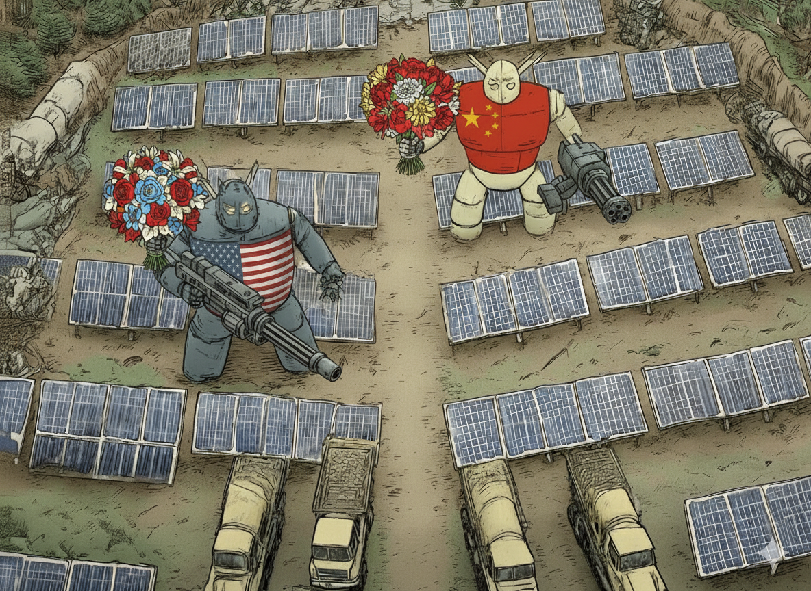 This brings us to the deeper transformation Nils Gilman identifies - the ecological Cold War that's dividing the world not by ideology but by energy metabolism. On one side stands China, which is pivoting from coal villain to green hegemon. They now control roughly 80% of the global solar supply chain, around 70–80% of lithium‑ion battery manufacturing, and the vast majority of critical mineral processing—part of a state-led transformation that treats ecological modernization as both environmental necessity and geopolitical strategy.