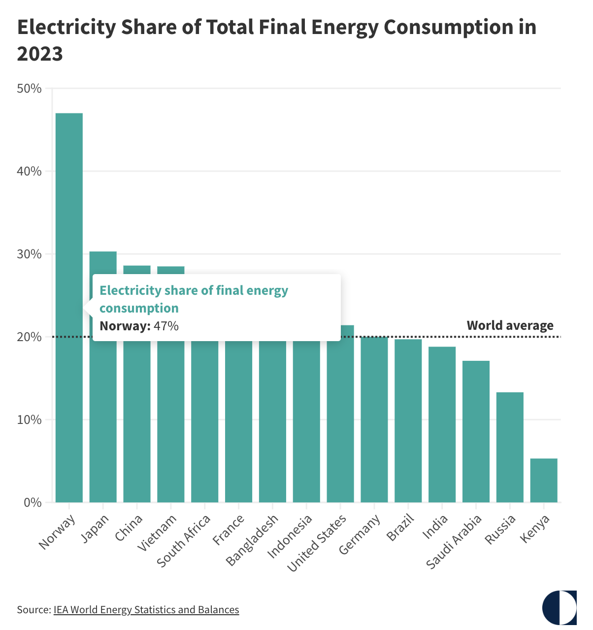 However, many countries, such as Bangladesh and Pakistan, are focusing on becoming consumer electrostates by electrifying their economies without leading in clean energy production. This approach offers immense benefits, including greater efficiency, cleaner air, and enhanced energy security. Electricity, even when generated from fossil fuels, reduces emissions compared to direct combustion, and technologies like heat pumps and electric vehicles lower carbon footprints even on dirtier grids.