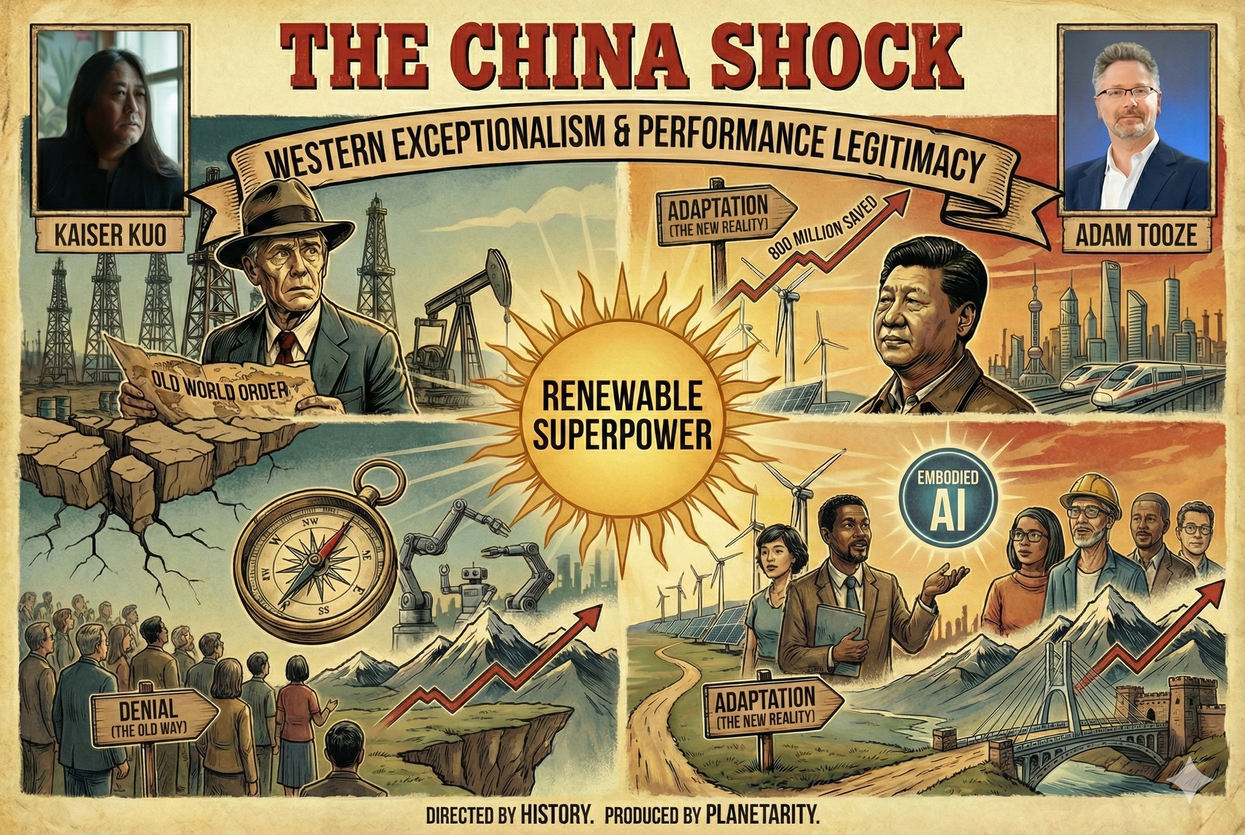 Kaiser Kuo, host of the Sinica Podcast and professor at NYU Shanghai, argues that what the West faces is fundamentally perceptual and psychological. We have witnessed China's transformation without absorbing what it means. The familiar frameworks—middle-income traps, authoritarian brittleness, inevitable convergence with liberal norms—offer cognitive comfort even as they fail to explain observable reality. It was once axiomatic that a dynamic market economy required liberal democracy; China has showcased an authoritarian capitalism that works anyway. It was assumed that genuine innovation required political freedom; then Chinese firms and labs began producing world-class results while operating within a very different information ecosystem.